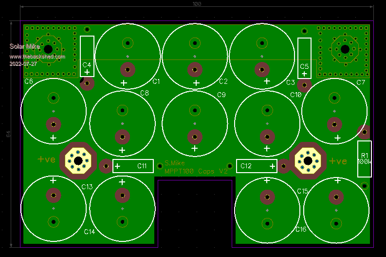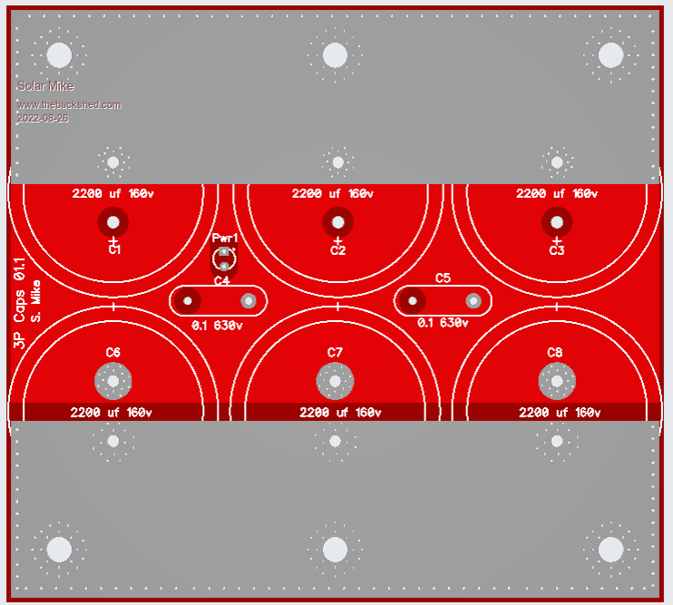 The common shared input capacitor bank sits on a hat pcb above the main board, have made a couple to suit differing electro sizes.
