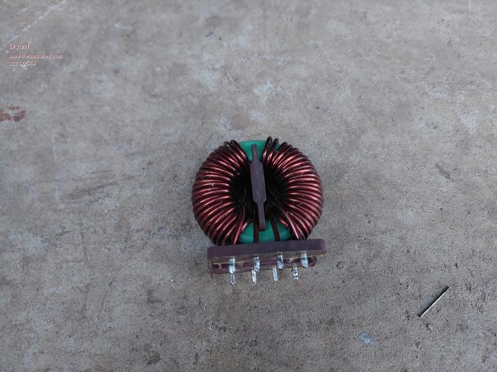 Bryan, the best you can do with that choke is rip off the wire and look at any markings on the core. Google them and if you find its a powdered iron core its useful. Find two or 3 more of identical cores, stick them together, wrap some decent size cable (similar to expected primary current) around it and you have a good choke for an inverter. You might get 6-8 turns around it, depending on the hole size. |