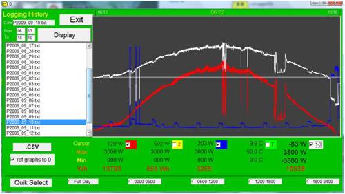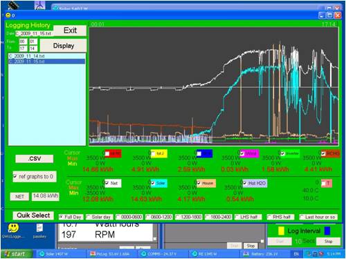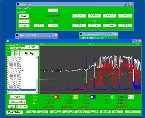 PS the only drawback with logging at short intervals is the need for a PC running. The info gained though, far outweighs the 10-15W used by my logging PC. I would not use a normal home computer for logging. I don't mind looking at the data remotely on the big screen though.