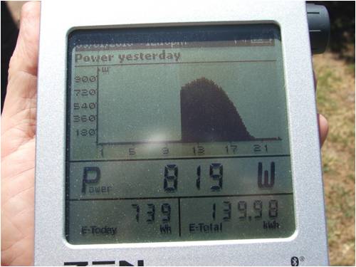 It is a nominal 1Kw system employing an SMA SB1700 inverter, 6 X 175w monocrystalline panels and a Sunny Beam Bluetooth display.