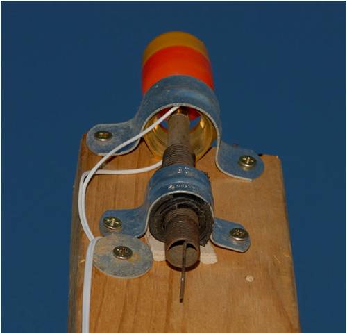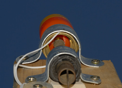 Contact is made between a brass tube over the top of the bit of wooden dowell and the gal saddle.