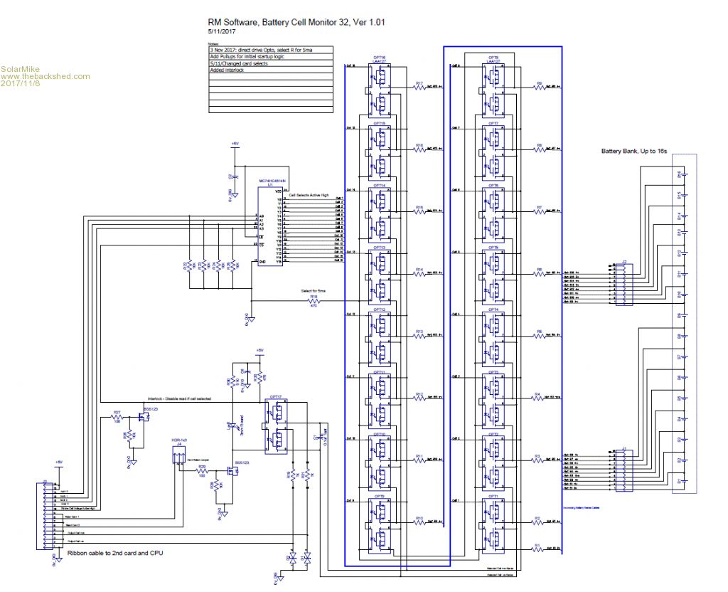 The above schematic was what I started out with when using relay switching and the central software driven cell balancer. The floating cell balancer part will be removed from the final circuit board.Edited by Warpspeed 2017-11-09