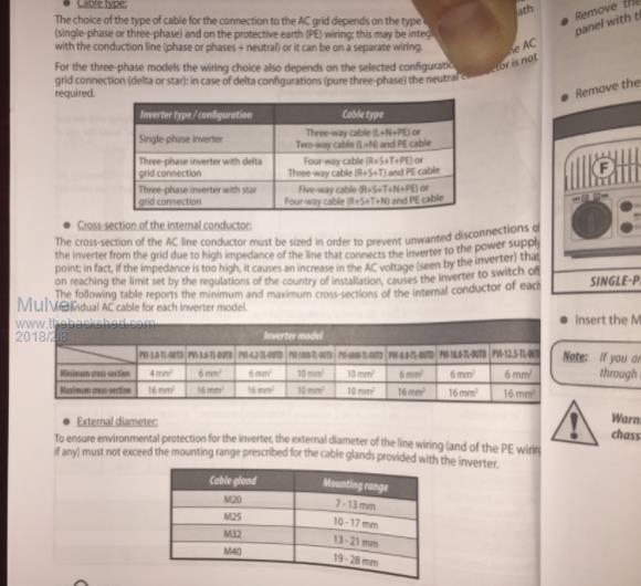 One inverter has 5.5 Kw of panels and a 5 Kw inverter and feeds through 2.5mm cable.