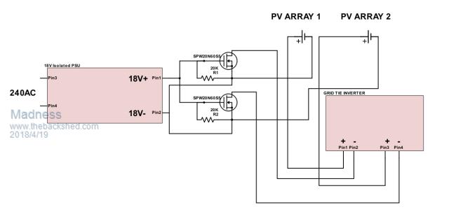 Turn on the AC power and it will conduct, turn it off the PV power stops.