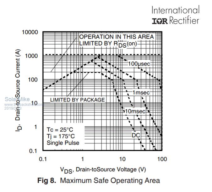 Look at the data sheet specs for the Max Safe Operating Area graph, there will be a DC load line, if you limit the voltage across the device to a few volts then currents can be very high, just make sure the voltages and current remain below the line, see example below for an IRPF4468, that I use in my inverters.
