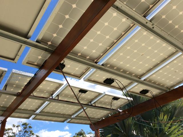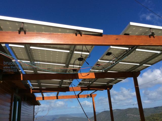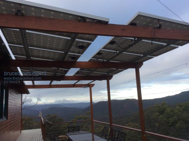 We used to have grapevine growing where the panels are now . Only trouble with that was the possums at night and then the python snakes used to make a home in the vines waiting for a meal !!.