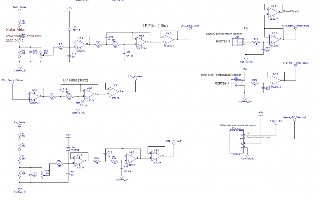 PV, Battery voltage sensing, temperature and custom 1-wire network, have used active low pass filtering to get rid of crud on the sense wires.