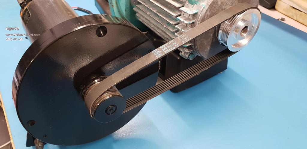 After looking at various taper fit pulleys ... being a bit scared off by the prices ... as well as the fact that there was not a lot of shaft sticking out ... and also thinking of the friction that would be created by having a V-Belt tight enough to drive properly ... I was starting to have second thoughts.