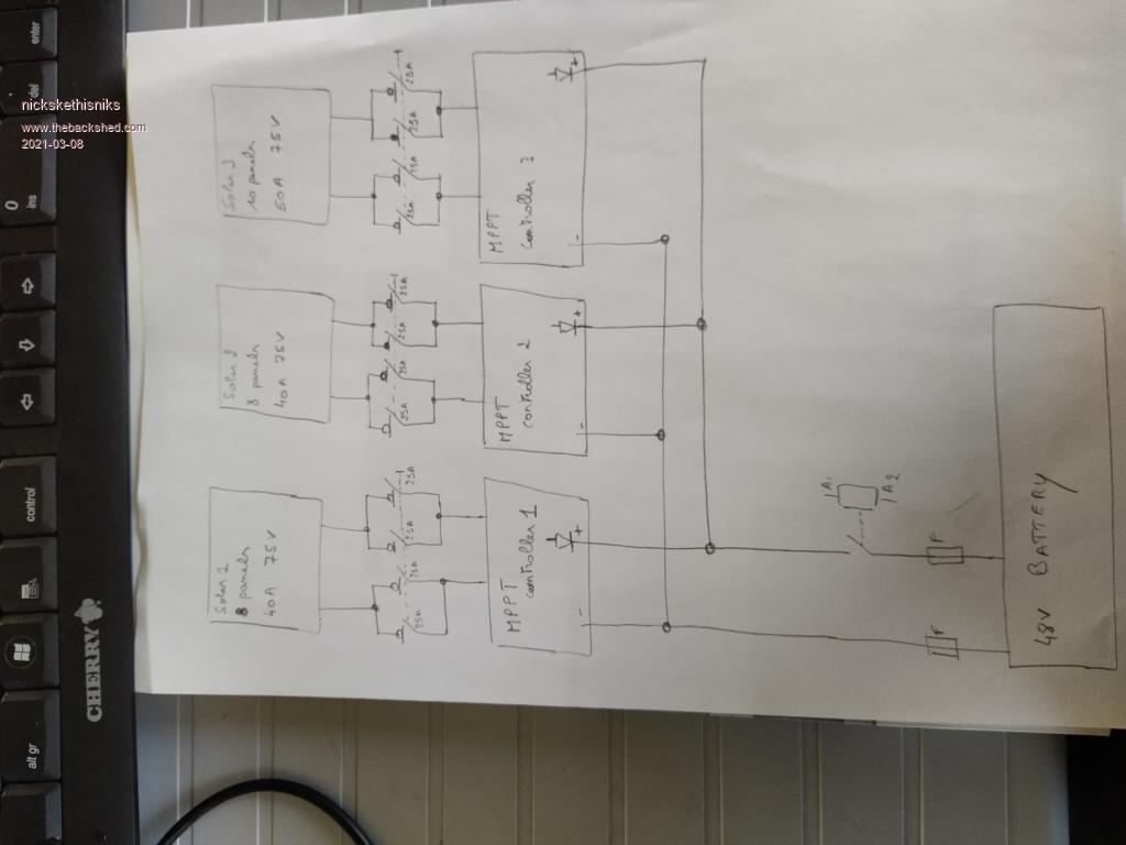 I'm redesigning my energy system. I'm making cable run's shorter and thicker. One thing I want to include are solar disconnect switches for bringing down the solar arrays. That way I can work more safely on the system when things need to be swapped or changed. I do have breakers at the moment.