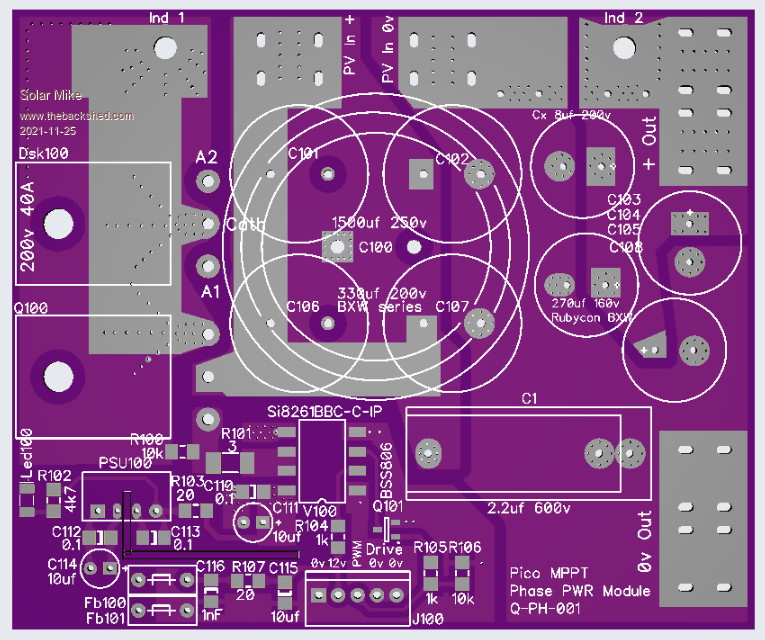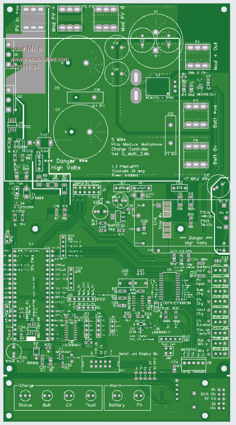 The previous iteration of the PWM charge controller has sort of morphed into this new design. I had wanted to re-use the existing pcb layout for the control and display section to drive a lowish power MPPT buck PV charger unit.
