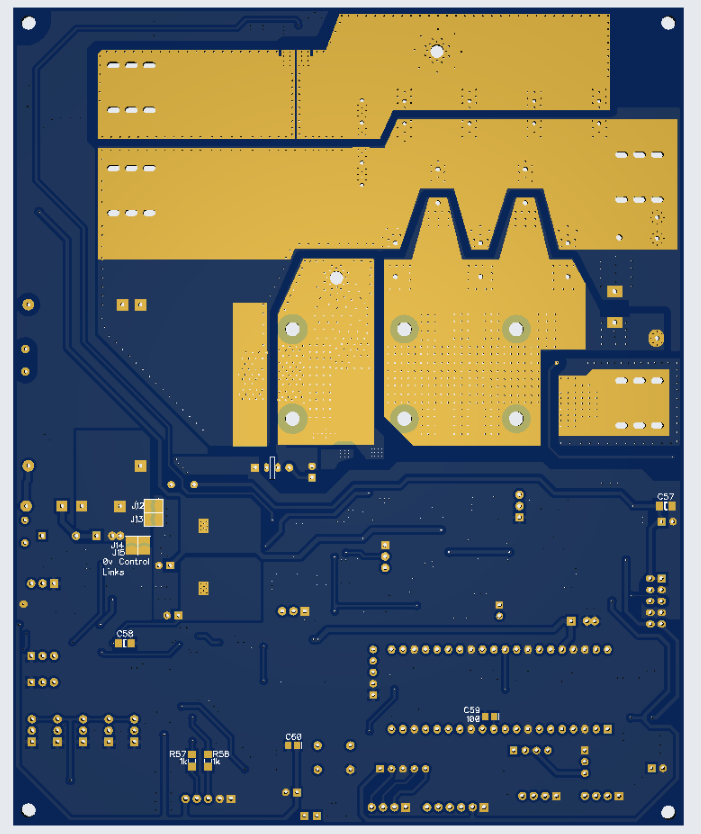 Last one for 2021 I promise, thought I would throw together a smaller non-synchronous version, where all parts including the buck inductor fit on the pcb. Less current 30 amps and using smd mosfets. The pcb conducts the heat through to an alloy spacer under the pcb to the heatsink - back panel.