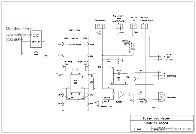 For those wishing to build this without the solar power diversion feature (once the thermostat opens) just delete the relay and the extra IGBT in the schematic above.