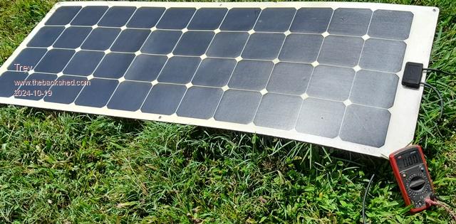 There are 4 panels in series to make 48v nominal for charging the quad bike battery, nominal 48v. First installed 9 April 2021.