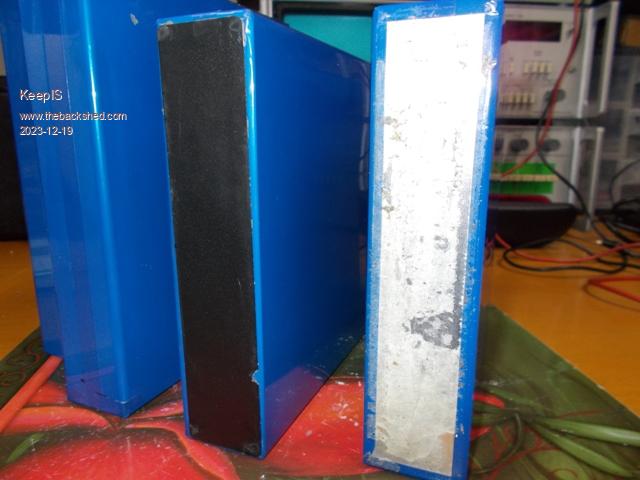 Found one with the bottom protection cover partly unglued, that exposes the metal case which is also the Positive terminal of the battery. The active metal case of this style of LiFePO4 is why I questioned the decision to just lay 4 of these cells together and wrap them in tape, that blue metal cover is pretty thin, if a pair of cases punctured through for any reason that's two batteries shorted.