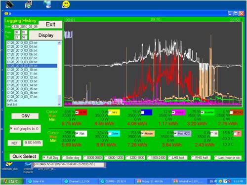Hi Don, the logging aspect is good for conversation initially, and has merit long term if a problem develops. There are legal requirements for kWhr recording and these are being met with even the basic units now. The SMA inverters originally had no display, and were an extra cost option. I would still prefer to buy a unit with fancy display and logging. I am biased this way being retired, but others with less free time may not be as interested in the day to day aspects. I have the serial comm port option on my SunnyBoy1100. This allows a logging aspect, but I prefer to just record the kWhs. The new LCDs gives more info with a cumulative graph, but I would be reluctant to buy blootooth enabled and still need to have a PC for logging as well. Gordon. become more energy aware |