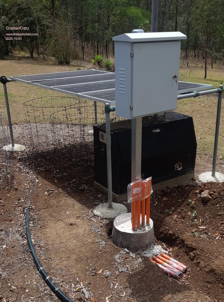 While the quoted article references shed mounted system and a focus on batteries, I took it upon myself to include my entire ground mounted system that feeds from solar panel to LED light into the house.
