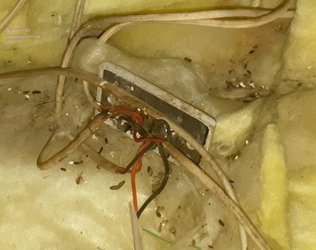 Anyways, saw standard wall mount double power points hanging loose in the ceiling and being used as a bus to feed other circuits...covered in ceiling insulation bats (in case it got cold?) and rat poo that said, "Kilroy was here".