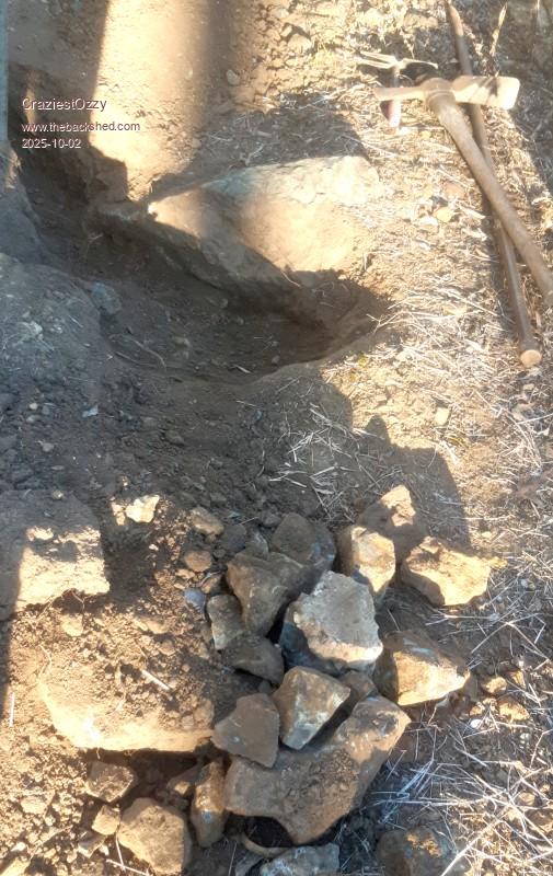 Will have to cap the dug channel ready for conduit with 10cm thick slabs of concrete as can't dig through solid basalt with a pick-axe.