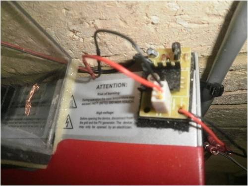 INverter cooler -12V PC fan, scrap PVC sheet, grille, 12V fan speed controller uses heatsink temp to vary speed, switchmode power supply from dud battery charger.