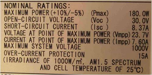 the panels i`m looking at adding are 180w (see specs below)