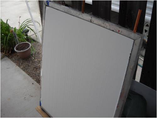 I'll use it for a week or two and then share some data on how it works. My hope is that with nearly 4 times the surface area of the first attempt, this will make hotter water. I'm also going to change up the direction I pull and push water through the receiver. Now, I pull the cold off the bottom (with a pump) and push the solar-heated water in at the top. If in fact the water from this new panel is very much hotter than the first one, I'm going to reverse the flow direction and put the heated water in at the bottom. This will allow it to "thermo-siphon" or migrate by itself up through the cooler water in the tank and maybe heat things more uniformly; maybe not. I'll let everyone know the results if I do reverse the flow.