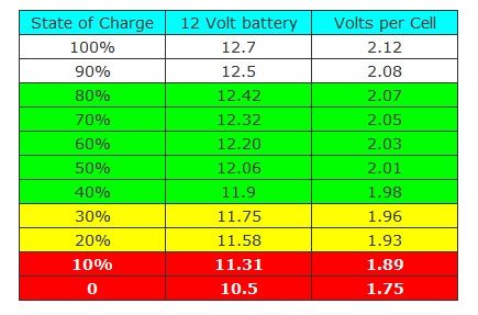 same goes for charging, the harder you push the energy in, the more the battery resists and the higher the voltage rises. so you can trickle the current in over a week at 13.8 volts and the battery will fully charge. To charge it from 60% to full in a few hours you are going to have to be 14.3-14.8 volts to overcome the chemical resistance. As Oztules says once they are very close to fully charged if you dont back things back to an idle you will lose water out the vents. As he also says with glass mat, sealed lead acid and gel batteries things need to be far more precise because once they fill up there is nowhere for the energy to go, lithium even more so, although lithiums have the advantage that they dont suffer degradation if they are not fully charged so we can leave them at 90% for years at a time.