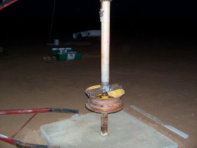 Hi all, thought I would try my hand at building a VWT, so far so good, 8 ft trailer axle ,16 ft x4in bore casing, 2 x 44 gal oil drums, and an idea that has been ratteling around in my head for a while now. Dug a deep hole and put the axle in it,