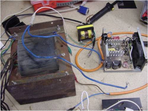 BTW, I like the way you use alligator clips to connect the inverter. Looks much too familiar to me . Keep in mind that those cheap and nasty wires/clips (ever opened one ? More plastic insulation than copper wire in them) have large resistances, ~0.5-1 ohm. I consider them 'connectable fuses'. The best part: they start to smoke before they open, thus giving a warning. I normally put a 2nd wire parallel over the ones that smoke . And I permanently have 4-5 wires that are waiting for repair (I replace the cheap wire by much thicker, usually taken from old PC PSUs (hey! Another use for those PSUs!).