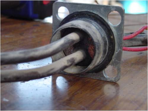 Now we screw it into the water heater and were good to go. The temperature control is integral with the fitting, and we will use that as well. An O ring is used to seal the plate to the housing like this: