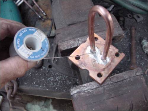 The solder will be fine, as the max temp the copper plate will see is 65 degrees C.... A big water cooled copper plate heatsink.