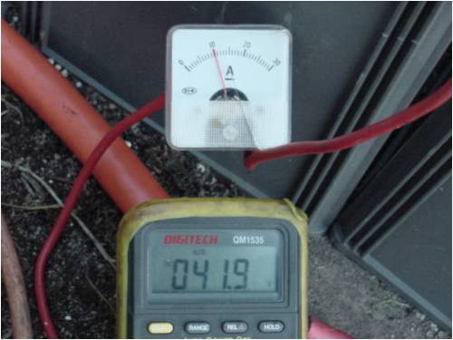 Yes... the alligator clips. Too too handy those things. I have very few left with the original wire. If you check out the amp meters above, they have the same clips... but 6mm 50A wire going to them. Most get replaced with the innards of 15A extension cord wire. Those little clips can stand upwards of 45A for a short time I have found.