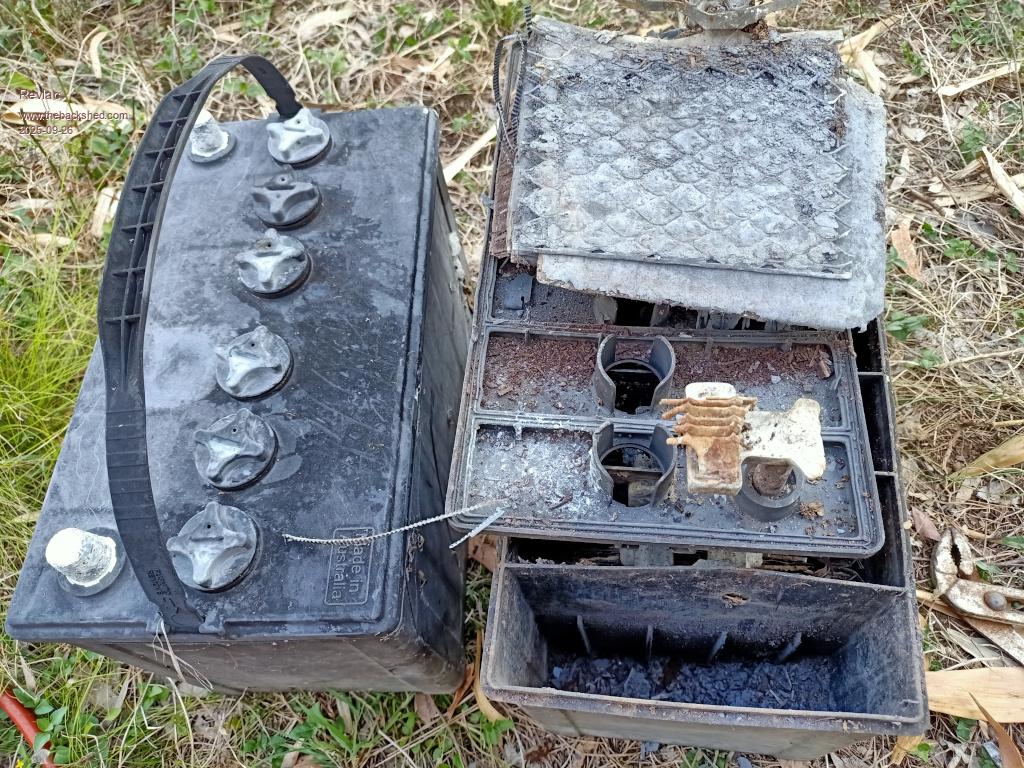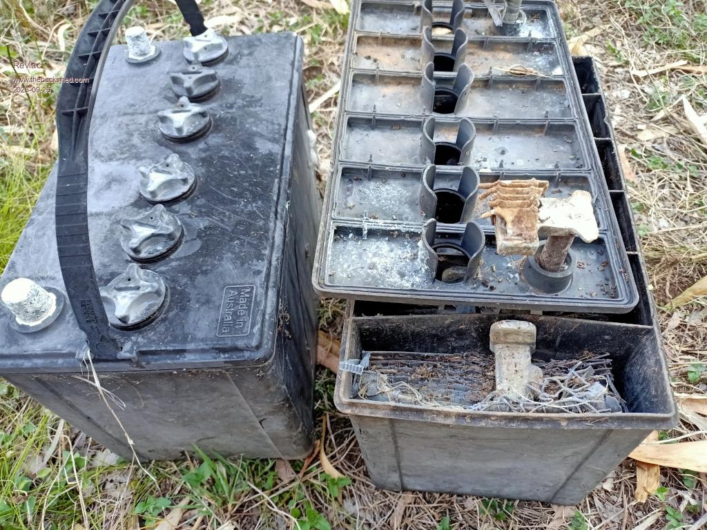 After a few more years, more of the batteries had deteriorated, there was about 10 years age difference between some of these batteries, cells dropped, terminals corroded and fallen off, terminals blown off and the plastic cases were cracking and leaking acid, sometimes bad cells (on 6V batteries) were jumped over.