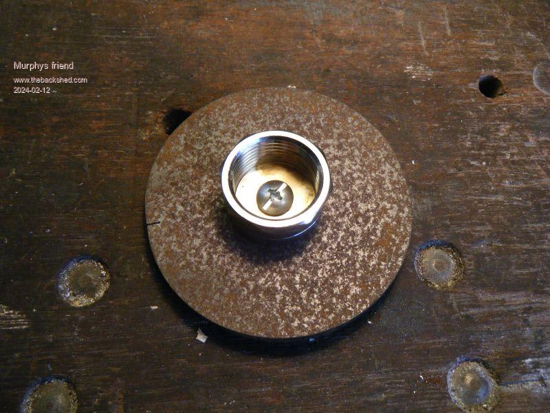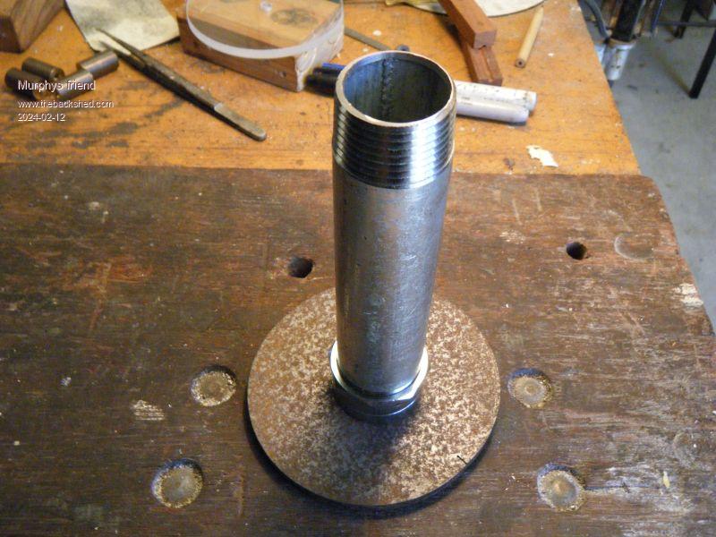 It is important that the base is heavy and big enough to prevent tipping over. I used a 6mm thick steel disk, this was tapped M6.