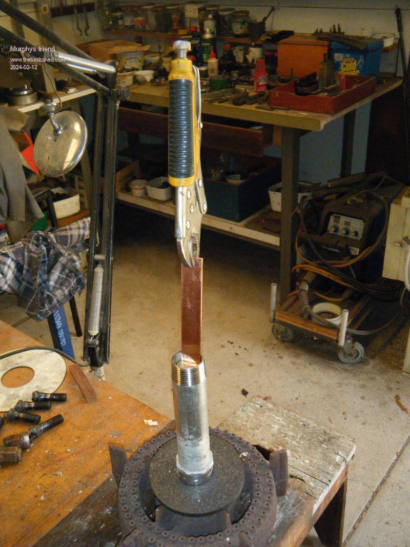 As soon as one half was tinned the bar was gripped on the tinned end and the other half was tinned. For a first timer that might have to be repeated until the wiping part is turning into first class job .