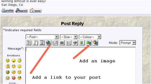 Hey MacGyver If you can wait till this weekend, I've been meaning to put up a little tutorial on adding links and images. Also, you can experiment by making changes to you post and clicking the {Preview Post} button, without actually ever posting the message to the forum. Glenn The best time to plant a tree was twenty years ago, the second best time is right now. JAQ |
