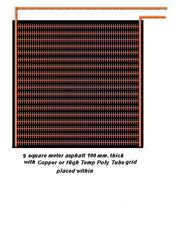 My new Australian friends taught me a new slang term! "WINGE-ING" means "Complaining. From yelp.com Hi Bob; It appears that you and I have similar Views on storing energy. or at least recovering methods. The Fact that refrigerants can produce high pressure Gas at temperatures we normally see as cold is a means to Harness passive solar energy. The equipment associated with a turbine or a more efficient piston type (air-Gas)Motor is a bit complicated for average DIYourself'er. Here is a crude and cheap solar collector, certainly not a new idea, that nearly anyone can build. and would be useful for home heating in higher latitude where Sunshine tempers the frosty Winter. It would cost a few dollars, But if heating with Gas, Oil, or Elect. it would quickly pay off. Asphalt, an old abandoned road, removal of parking lots for new construction, some times may be free for hauling away. A pipe grid made from Hi temp plastic such as used in hot water systems in homes. A Large tank buried and insulated, Example, 946 Imperial Gal. (1000 us gallons,to be heated to 135 Deg.F., 57 Deg.C. assume 90 Deg.(32 C.) to be the lowest usable temperature. ( There is one btu per degree F. in one pound of water). A US gallon weights 8.345 pounds, so crudely 1 gallon of water heated 1 degree will hold 8.3 BTU more than it did before. My Windows calculator shows that 1000 gallons water heated from reference temperature, 90 Deg.F. to 135 Deg F. will store, (1000Gal. X 8.35 pounds = 8,350 pounds), 45 degree increase per pound of water will total 375,750 BTU. if you divide this total by a cloudy 24 hour day, your output can supply 15,656 BTU per Hour. 3.41 Btu = 1 watt electricity. 375,750 BTU / 3.41 = 110 kilowatts, / 24 Hours = 4.59 KW.per hour. Solar Heat = 1000+ btu per square meter figgered at 40% in the winter with a wind fence or Plexiglas Poly enclosed, the outside ambient will keep the plastic cool enough in the summer if ventilated. Do not circulate the water in summer except for heating your pool. Add a softener to the old asphalt,something that evaporates and build a 3 meters square 10 ft.x 10 ft.(9 square meter, 100 sq. ft. slab, at (400 watts per sq. meter 40% rough), = 3600 watts Hr. at 6 hours sunshine, = 21.6 kw hr.s This will raise the water temperature 8.82 Degrees F.= 73,656 btu This will not be a 100 percent answer to heating in all places but can put a large dent in the fuel bill. Don't forget a circulating pump will be needed. I just realized how much wind iv'e sent to oz. hope you's can use it. Nothing Is engineered, this is a general outline of something usable. Bugs may exist.. Time has proven that I am blind to the Obvious, some of the above may be True? |