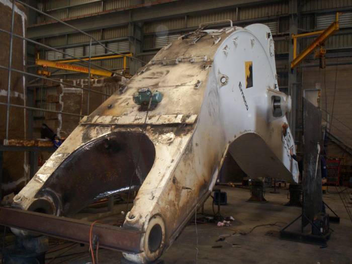 The boom is from a large excavator used in the open cut mines. They come in for repairs, and after the welding work is done we stress relieve to "settle" any welds. It also opens any cracks in weak points, which need more work before the job is finished. Its all part of the QA ( Quality Assurance ) requirements. Same with pre heating, all areas to be welded are preheated to anywhere between 150 to 300 degrees C before welding is started. Now preheating a bucket that weighs over 50 tones takes a little gas! Same with cool down, all controlled.