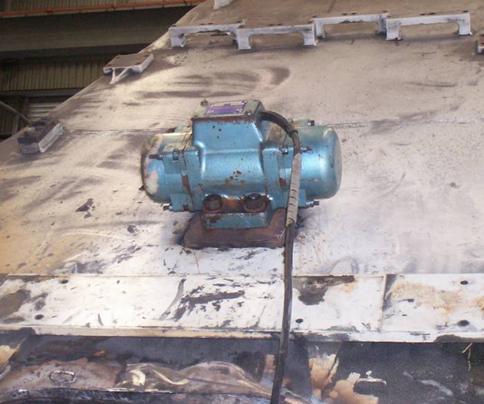 We were stress relieving a boom today at work. A vibrator ( motor with out of ballance flywheel ) is attached to the boom and run at various speeds.