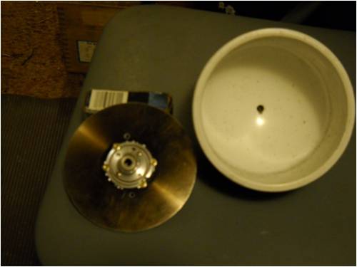 Isaiah at Bub's again! The pictures below will show he progress on the anemometer. This pic. shows a modified vcr motor bearing housing mounted to a hard drive plate that was turned to a snug fit in the pvc cap.