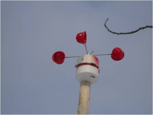 This picture below shows the complete opto coupler and the sensor all installed. We are going to run a data cable down the pole a ways for the picax and radios when We get that far.This way I we won't have to climb way up to adjust the smoke orfaces etc We will try it out as a hard wire unit first and see .that the opto unit works as should and we can calibrate it in as needed. We may have to adjust the swept area of the cups if they don't calibrate . The swept area of the cups is 17 inches. I think Bub & Gizmo will have a program so we can run it on Linux. ' '