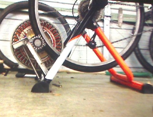 So I've decided to attach the smart drive to an indoor trainer, its a 42 pole 60 series (I think its 0.6mm, my digital vernia needs batteries). its wired as 7X2C and I've de cogged the poles. as you can see in the picture the wheel turns the drive shaft and with no electrical load it works well...