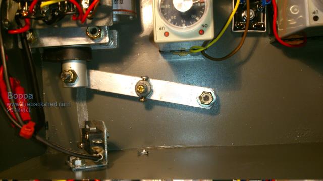 The linear actuator that was the heart of the build- thanks to Neil for making the cable 'grabber' it started off as a simple bolt, he drilled down the center, then drilled a cross hole to fit the cable into, then tapped it to fit the holding screw at the top...., then as it has to swivel, made up the nut so it could rotate on the actuator bar, which also converts the actuator throw length to the cable throw length....