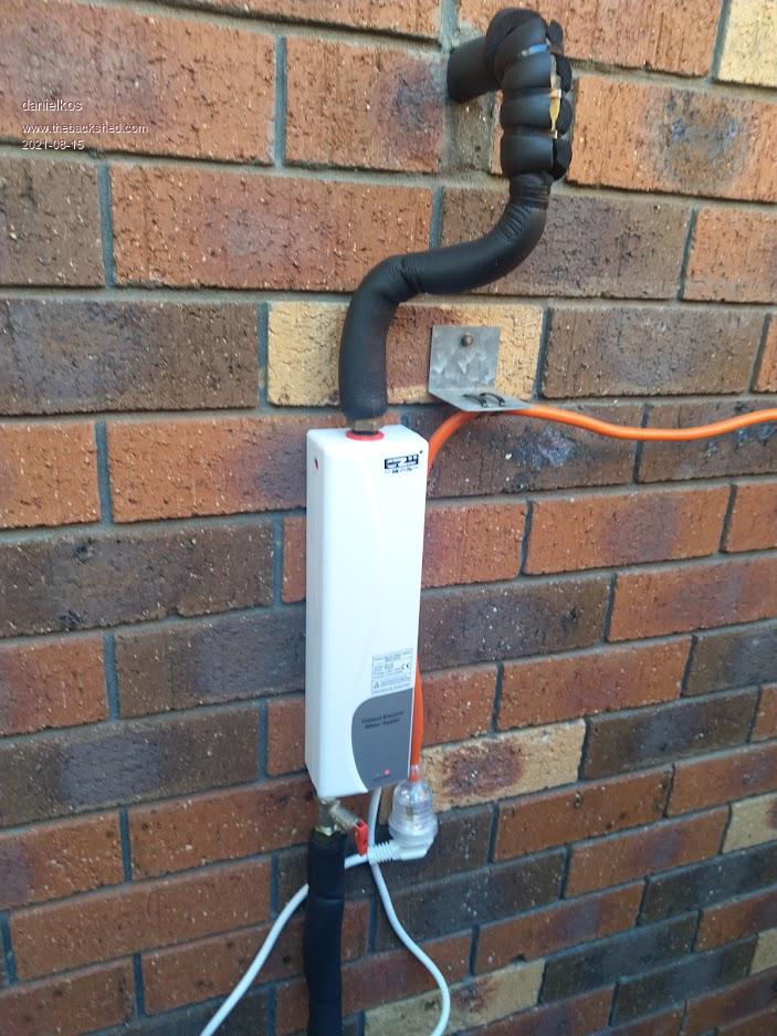 Earlier this year (during lockdown no less) my old Rheem gas 135L storage hot water service exploded into a million pieces so I had to do something to get my non-cold showers back. This is in a Melbourne climate where our hot water systems are mounted outside against on the side of the house.