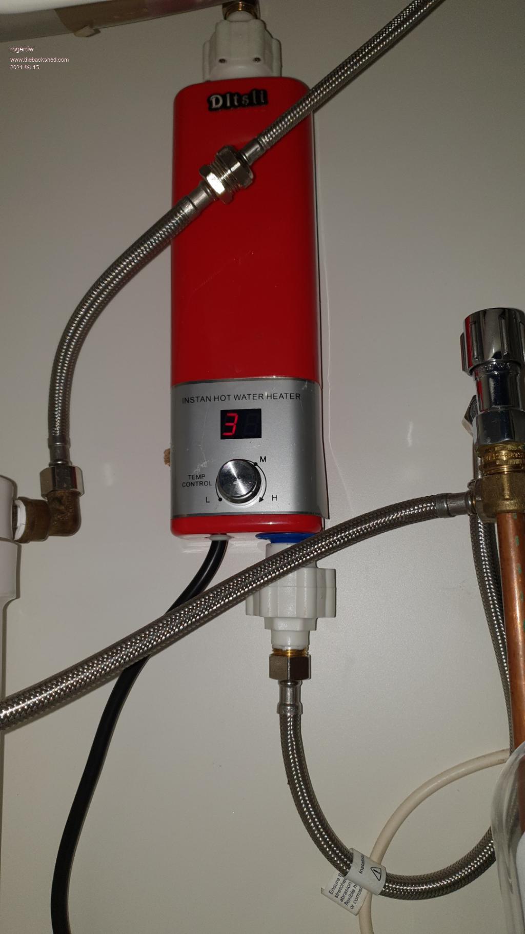 The main drawback with this system is that you have to adjust the inlet valve that runs into it to limit the flow rate that you get at the hot taps inside the house. It can only handle a rather poor flow rate (only about 2L/min but my low-flow shower head handles that well enough) otherwise the heating element can't 'keep up' and the water is cold. This gives me about 40 degree water straight out of the hot tap, and if I want it hotter in the kitchen I turn down the hot tap so that the water moves through the water heater slower (this gives me just over 50 degrees for washing dishes).