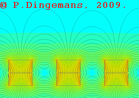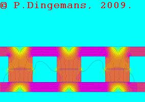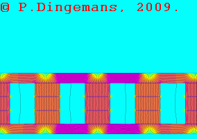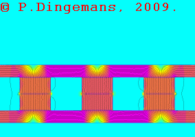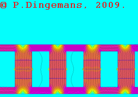 One final disclaimer of all these simulations and animations: they're only an approximation of reality and don't take all factors into account. They basically show only the magnetic flux as it is when there is no generation going on. As soon as real generation starts, the coils create their own, counter-acting magnetic fields, which influences the magnetic field the permanent magnets generate, in essence 'pushing it back'. So, anyone reading this, keep that in mind when interpreting the simulations and drawing conclusions. They show only a fraction of what is really going on inside a generator. Consider it to be an approximation (at best).