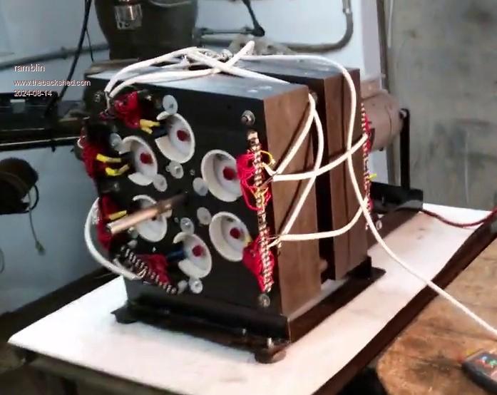 Thanks again nick for some very important info. You seem to have a good understanding of what I`m doing here. The points mentioned are all high priority and must be followed exactly. Polarity and especially winding direction must be adhered to or everything fails. I had an early machine with a different rotor configuration with all north on one side and all south on the other. Closing the magnetic loop was critical to getting any real output. Very difficult to build and never got around to making it out of laminated. This machine however, with alternating North and South design on the rotor has made very little if any difference so I gave up on the difficult idea. During construction attention was give to "perfect alignment" and all coils are struck at precisely the same instant so being in phase has not been an issue.