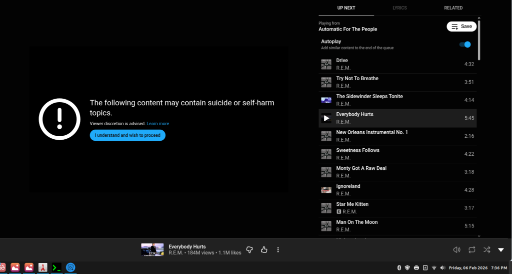 Listening to Automatic For The People tonight on YT Music, and it stopped on track 4.