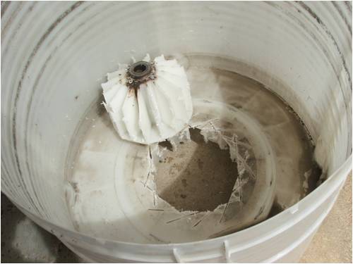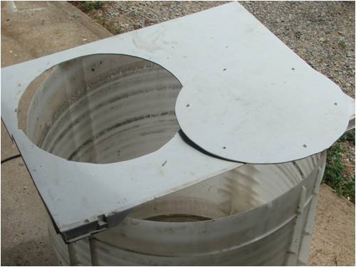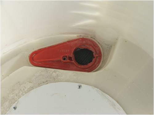 A couple of the plastic mounting spigots on the bottom of the white tub needed to be lopped off to enable it to sit neatly on its stand. The intake hole in the internal pump plate was enlarged and then a strainer of plastic shade cloth was glued into it with silicon and it was re-fitted. This was loosely covered with a plastic baffle plate also cut from the lid.