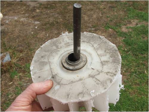 They are some good ideas for recycling. If you have access to a metal lathe here's another way to remove the hub. I use a 75mm hole saw, I have a length of broom handle that fits snugly into the bearings the broom handle has been put in a metal lathe & a centre hole drilled to accomodate the arbour for the hole saw. I drill from both sides of the hub & only have a small bit to cut out with a key hole saw where the hole saw isnt deep enough. Cheers Barry I need to learn from the mistakes of others. I dont have the time to make them all myself. |