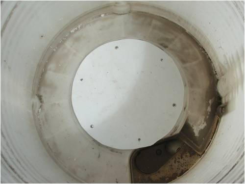 Re-cycling the leftovers The two tubs in the F&P seem to be popular as animal feed troughs but cutting the bearing holder out of the outer tends to wreck it for this purpose. This can be rectified by cutting a large circle from the plastic lid of the machine with a jigsaw and fixing it in place with the screws you kept when you dis-assembled it (You did keep all of the screws and bolts didn't you?). The lid is in two layers which can be easily pried apart.